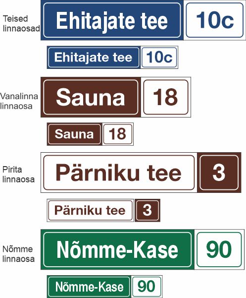 Aadresstähiste väljanägemist ning kasutatavaid värve reguleerib Tallinna Linnavalitsuse määrus, millega kinnitati Tallinna aadresstähiste määrus.