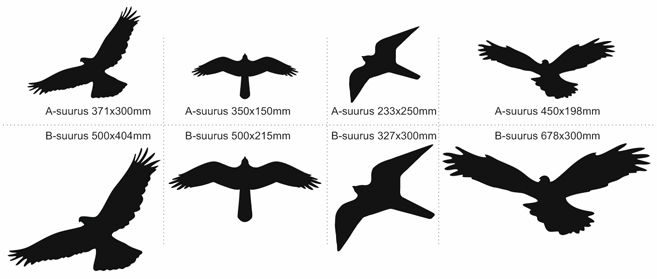 Lindude jaoks sümboliseerivad mustad linnukujuga röövlindude kujusi mis teeb nad ettevaatlikuks ning päästab nii mõnegi linnu klaasi lendamisest.