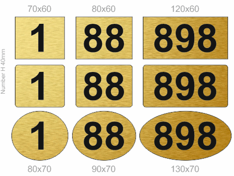 Kleebitud suuremad numbrid, harjatud hõbedasel või kuldsel plastikul (800mic).
