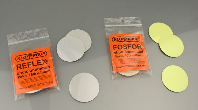 Kahe värvilistest helkurmaterjalidest valmistatud toodetele on võimalik tellida eraldi peale pandavad kaitsekiled.