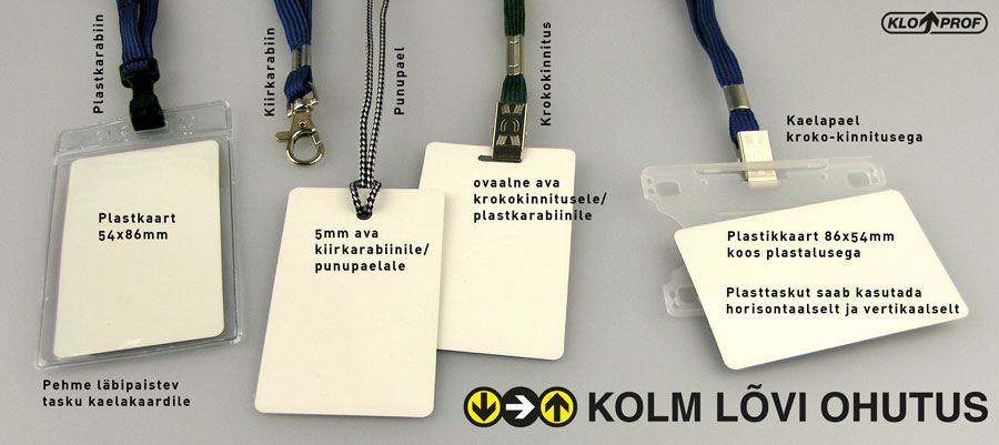 ERINEVAD plasttaskud kaelakaartidele. Materjal jäik plastik. Kaart 54x86mm.