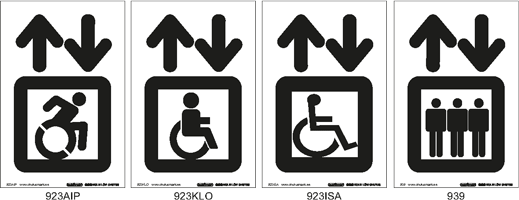 Lihtide tähistus ratastoolis liikujale (invalift) ja tavalift.