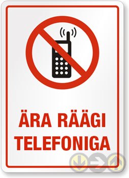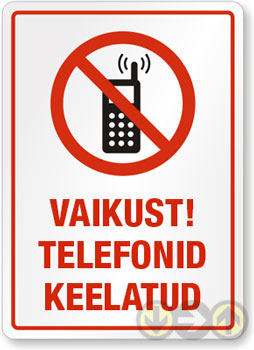 "Ära räägi telefoniga", "Telefoniga rääkimine keelatud, Vaikust!", "Telefonid keelatud".