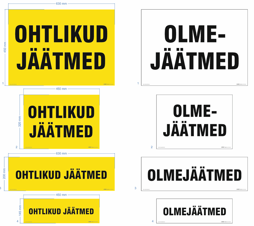PRÜGI LIIGITI KOGUMISE-, PRÜGISORTEERIMISE KLEEBISED - INFOTAHVLID (600x200, 300x100mm).
