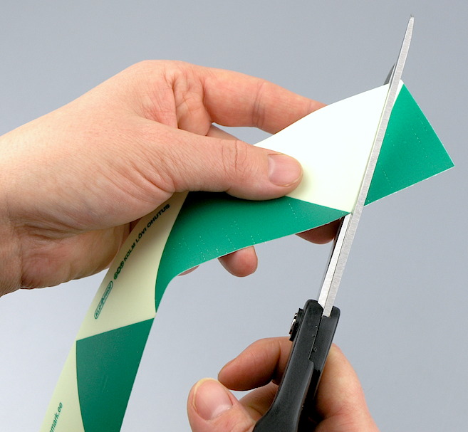Kleebitav põrandatähistus on kaetud libisemist takistava põrandalaminaadiga, mis kannatab kõndimist ja kergemaid laosõidukeid. Kleebitav põrandatähistus sobib kleepimiseks siledatele põrandakatte materjalidele. Lihvitud betoon peab olema tolmuvabaks lakitud.